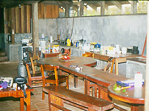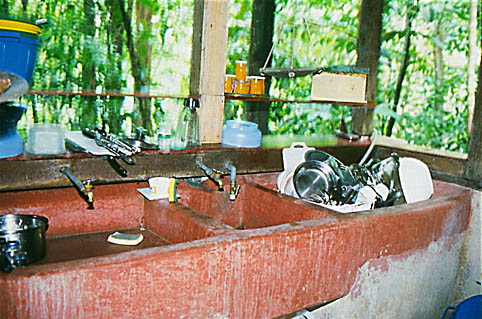 Wer auf seine saubergeputzte Resopalküche zuhause stolz ist, mag den Küchenbetrieb in der Station anfangs befremdlich finden. Aber gibt es zuhause auch den direkten und offenen Blick aus der Küche in den Wald? People who are proud of their modern clean kitchen at home may find the station´s kitchen service a bit strange at first. But does your kitchen at home offer you a direct and clear view straight into the rainforest?