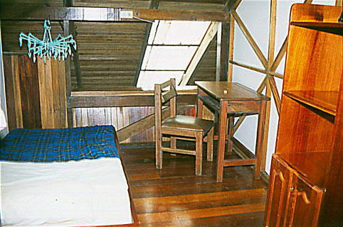 Blick in eines der Schlafzimmer. Meist sind es Zweibettzimmer, die nur durch dünne Stoffwände getrennt sind. Die Bauweise ist luftig und offen, dadurch ist es sehr angenehm kühl in der Station. One of the bedrooms. Mostly they are twin rooms, which are only separated by thin walls of cloth. The station has an open design and is thus cool and very comfortable.